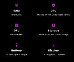 CPU: RK3326 64-bit Quad-Core 1.5GHz